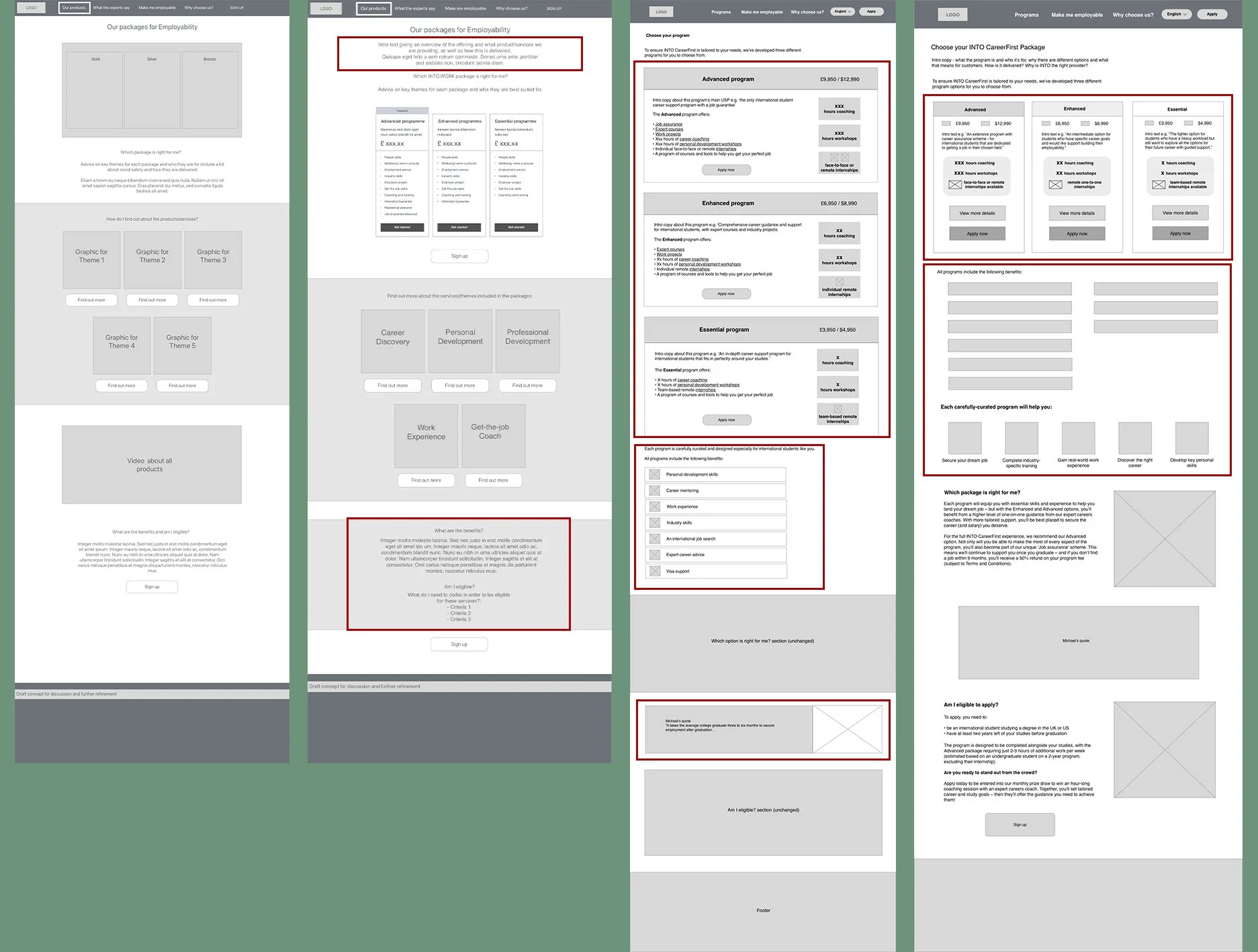 After reviewing our research, the key stakeholders decided that the INTO CareerFirst proposition required further clarification and simplification before they could effectively sell it online.